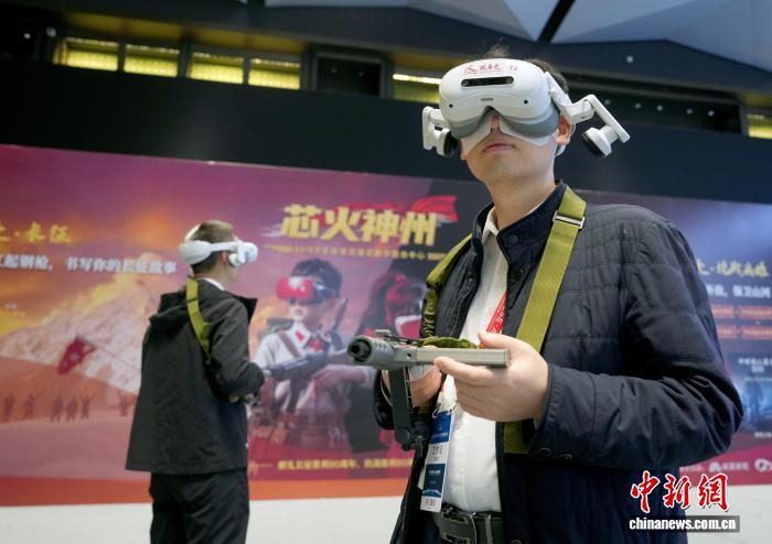 图为不雅寡正在赛爱宁沉迷式VR年夜空间巨做《随着走•少征》铺场体认。中新社记者 安源 摄