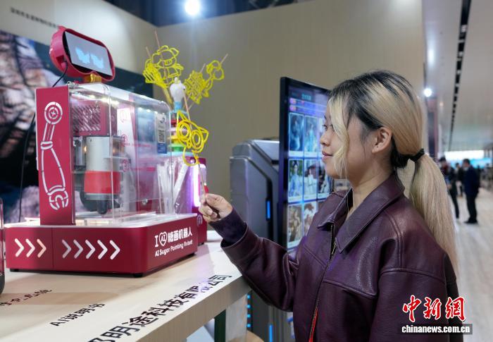 图为更始效果履历区铺出的亮途科技AI糖绘机。中新社记者 安源 摄